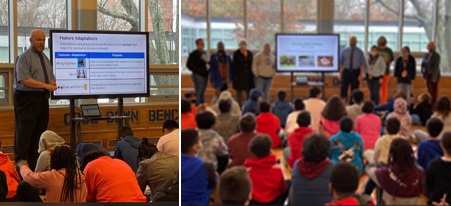 Right before Thanksgiving 2021, the people of Randolph saw wild turkeys everywhere around town. What's their story? The presentation in the photos above is from November 12, at the Donovan School, about Eastern Wild Turkeys. The presentation was also made at RCMS. Students at the Donovan School were treated to a presentation of the Eastern Wild Turkeys by photographer Bob Michelson. Teachers passed out informational hand-outs, to explain all the different aspects of wild turkeys. The presentation was attended by RFE Board members Mary Barrett and Judy Conway. "Students were attentive and had great questions for the presenter, and I myself learned so much to talk about at Thanksgiving," says Ms. Conway. The presentation was made with the participation of Principal Beth Gannon, and the valued attendance and participation of Assistant Principal Erin Finn. Several teachers brought in their students and enjoyed the presentation as well! |